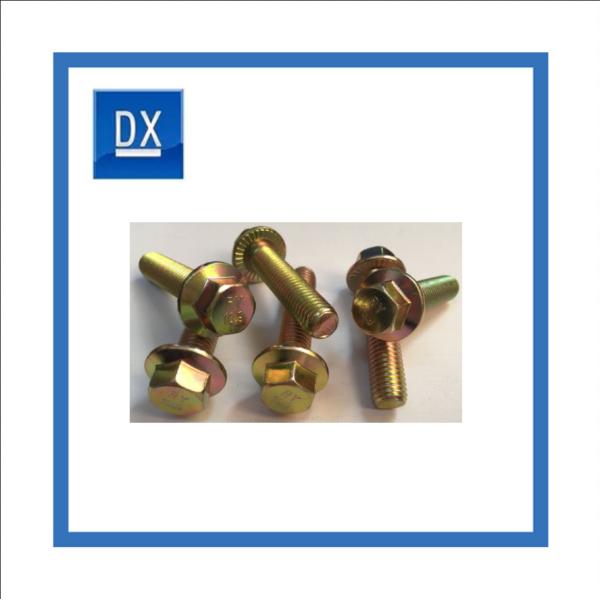 Flange bolts are composed of hexagon heads and flange plates. The "ratio of supporting area to stress area" is larger than ordinary bolts. Therefore, this type of bolt can withstand higher pre-tightening force and has better anti-loosening performance, so it is widely used. Used in automobile engines, heavy machinery and other products.
